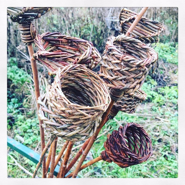 Un autre aspect intéressant du travail d’expérimentation de Cédric consiste à tresser des brins d’osier vivant pour en suite les élever dans des pots, en intérieur où en extérieur, ou dans des bocaux avec de l'eau où directement en pleine terre.