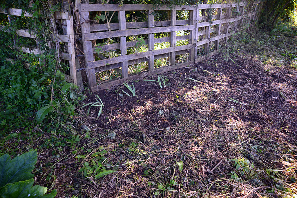 En haut et en bas vous avez une nouvelle butte qui longe la clôture du terrain du coté du chemin communal. Pour info nous avons ramassé toutes les pomme de terre et pu constater que la terre sous le paillage est absolument meuble et prête à accueillir les prochaines cultures.